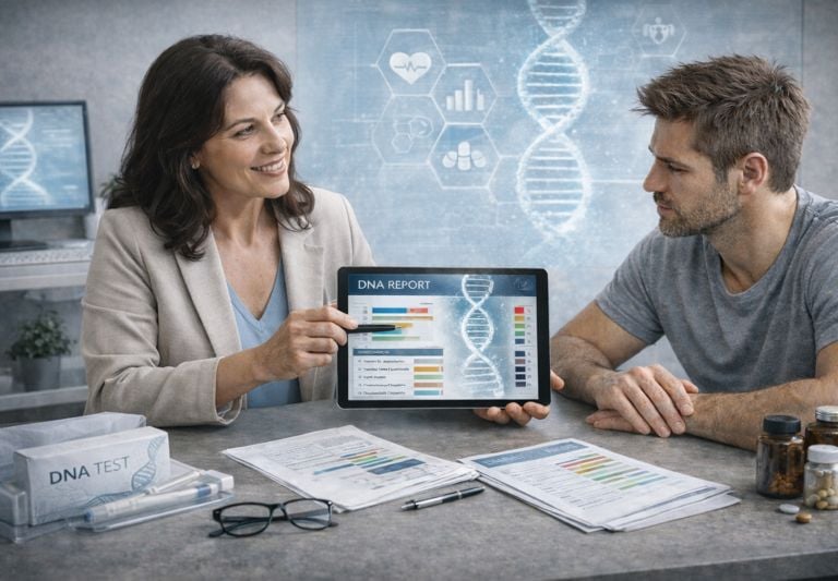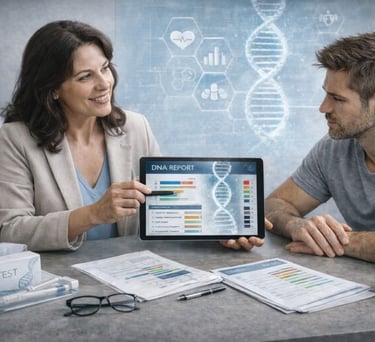 ולבסוף, חיברנו את כל הידע הזה לגישה פרקטית, אישית ומותאמת לחיים האמיתיים. את ההמלצות תקבל בליווי של נטורופתית מוסמכת, שמתמחה בקריאת דוחות גנטיים ובניית תוכנית בריאות מותאמת, בשילוב עם תוצאות בדיקות הדם שלך, והשאלון הרפואי המקיף.